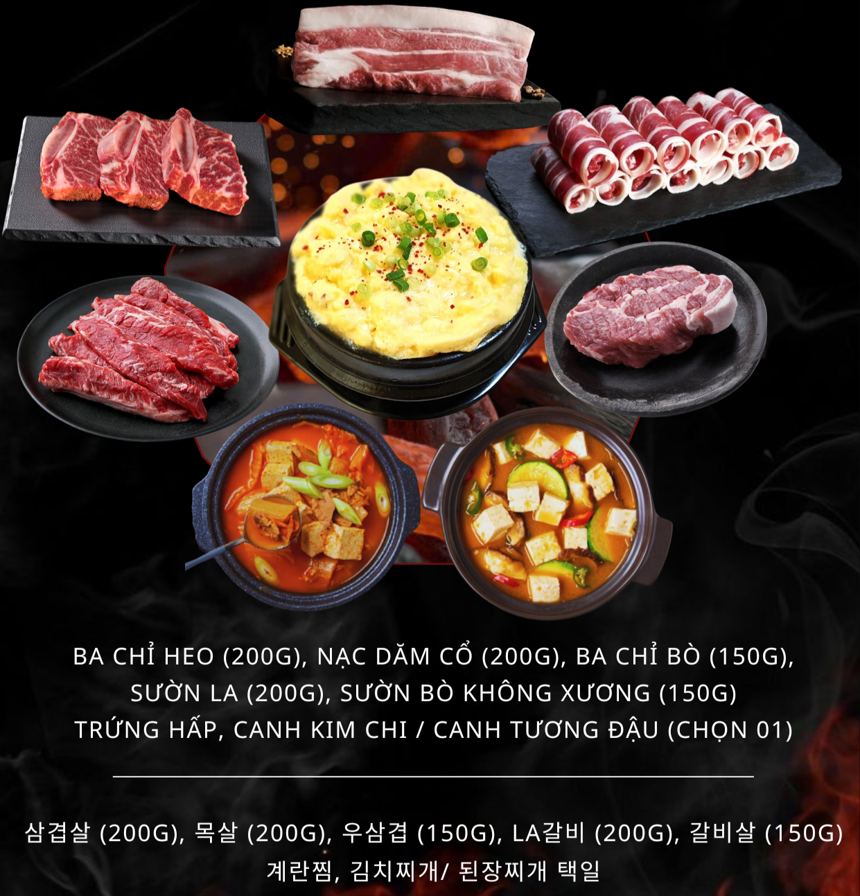 TRỨNG HẤP, CANH KIM CHI / CANH TƯƠNG ĐẬU (CHỌN 01)