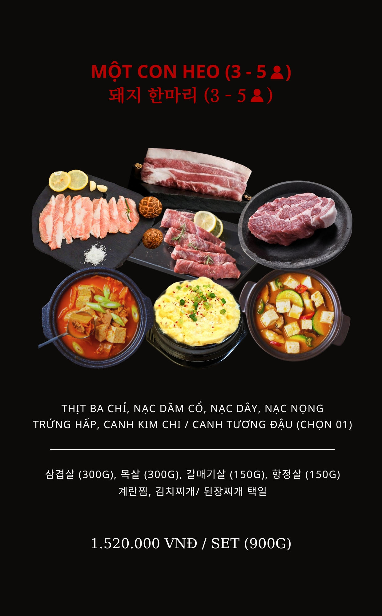 삼겹살 (150G), 목살 (150G), 갈매기살 (100G), 항정살 (100G)