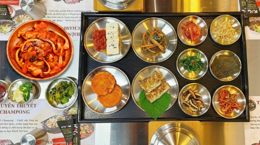 MỰC XÀO CAY VỚI 11 LOẠI BANCHAN VÀ CANH HÀN QUỐC - 오징어볶음정식