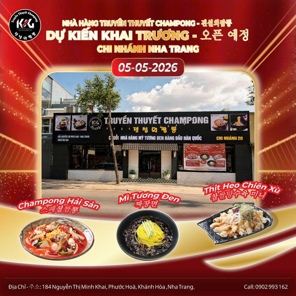 Sau bao ngày chờ đợi, hệ thống Truyền Thuyết Champong đã chính thức chọn Nha Trang làm điểm dừng chân tiếp theo cho cột mốc chi nhánh thứ 20. Đây không chỉ là sự mở rộng về quy mô mà còn là lời khẳng định về chất lượng và sự tin yêu của khách hàng đối với thương hiệu mì Hàn Quốc hàng đầu Việt Nam.